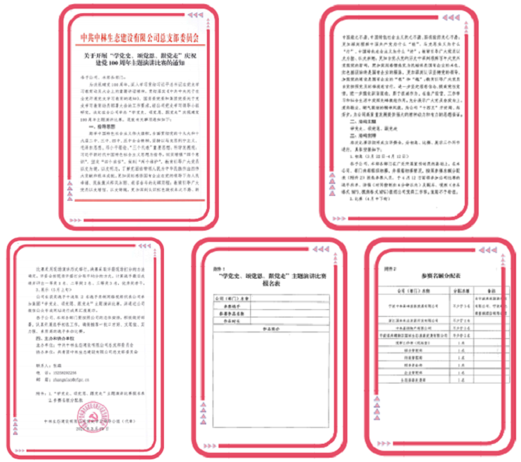 4.4月26日,為慶祝建黨 100 周年,深入學習貫徹習近平總書記在黨史學習教育動員大會上的重要講話精神,貫徹落實《中共中央關(guān)于在全黨開展黨史學習教育的通知》、國資委黨委和集團黨委關(guān)于黨史學習教育動員部署大會的工作要求,經(jīng)公司黨史學習領(lǐng)導小組研究決定,在公司本部舉辦了"學黨史、頌黨恩、跟黨走"慶祝建黨 100 周年主題演講比賽。