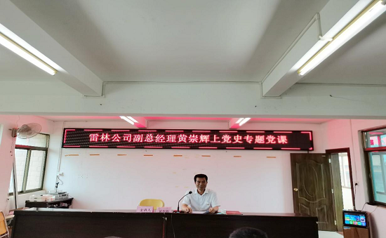 黃崇輝以《銘記黨史鑄忠誠,砥礪奮進開新局》為主題,圍繞百年黨史、雷林發(fā)展史、國企改革三年行動、聚焦主責主業(yè)、轉型升級、雷林公司四大業(yè)務板塊和“十四五”規(guī)劃發(fā)展戰(zhàn)略布局等方面進行授課。