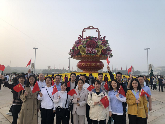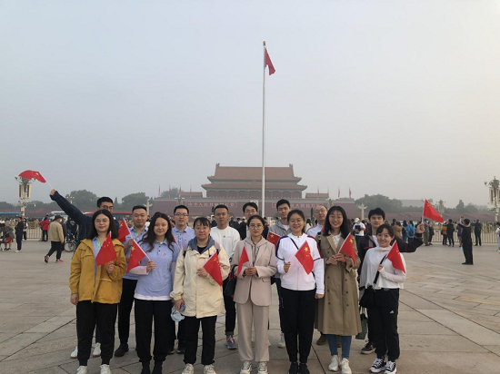 2021年9月29日清晨六時(shí)許,國旗儀仗隊(duì)邁著整齊的步伐護(hù)衛(wèi)著鮮艷的五星紅旗走向升旗臺(tái)。當(dāng)雄壯的國歌響徹天安門廣場,當(dāng)升旗手把國旗拋向空中,全體共青團(tuán)員行注目禮,高唱國歌。凝視著高高飄揚(yáng)在天安門廣場上空的國旗,團(tuán)員們眼含熱淚,對于偉大祖國的敬愛之情和強(qiáng)烈的民族自豪感油然而生。升旗儀式結(jié)束后,團(tuán)員們難掩內(nèi)心的激動(dòng)與喜悅,紛紛與國旗合影,表達(dá)對祖國母親的無限熱愛,共祝祖國繁榮富強(qiáng)。