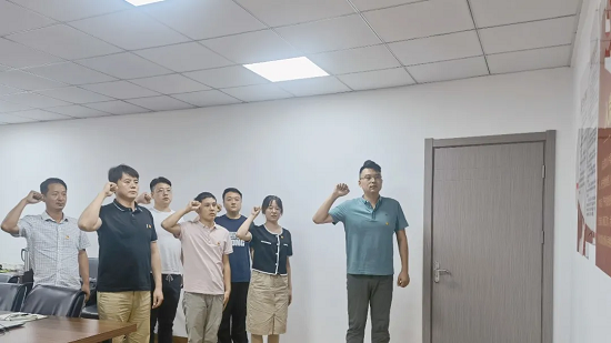 會議開始前,公司黨支部首先進行了重溫入黨誓詞儀式。支部書記趙磊領(lǐng)誓,全體黨員同時舉起右手,莊嚴宣誓。鏗鏘的誓詞,讓黨員們熱血沸騰,仿佛重回當初加入黨組織的那一刻,更加堅定了自己的理想信念和黨性認識。