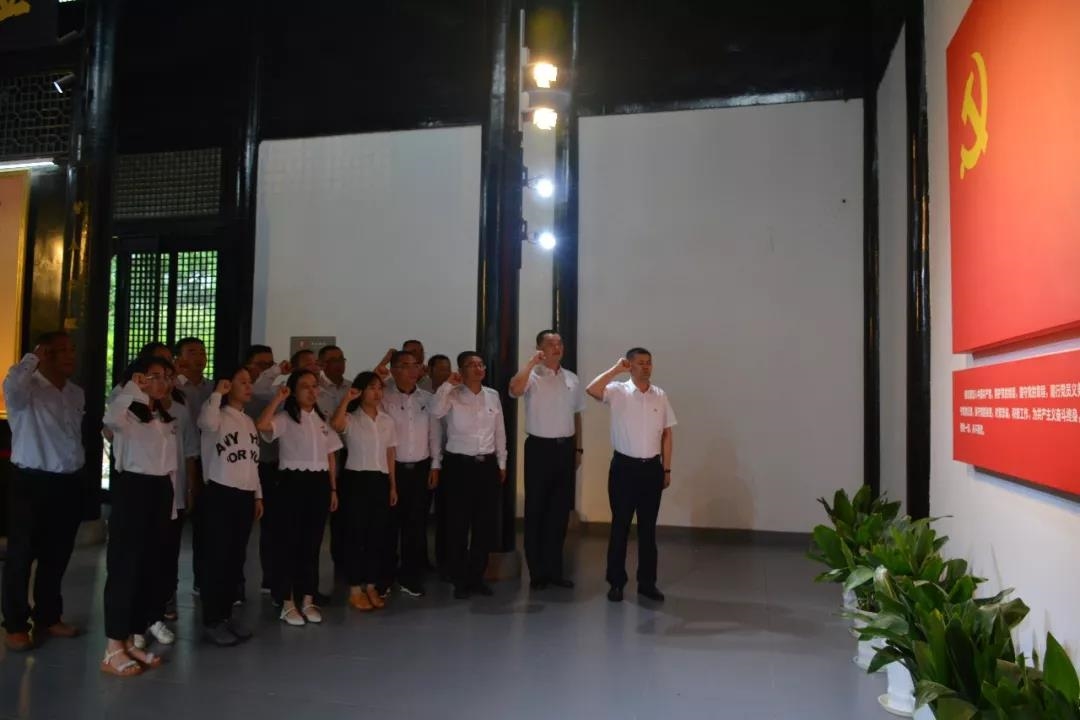 6月27日下午,大家來到泰山廟——新四軍重建軍部和中共中央華中局舊址瞻仰紅色遺跡、緬懷先烈遺志、追憶革命歷史,接受紅色教育和精神洗禮。在宣誓墻前,大家高舉右拳,由馬先偉書記領(lǐng)誓,重溫了入黨誓詞,以鏗鏘有力的誓言表達(dá)了對(duì)黨的鄭重承諾。