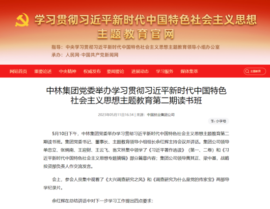學(xué)習(xí)貫徹習(xí)近平新時(shí)代中國(guó)特色社會(huì)主義思想主題教育開(kāi)展以來(lái),中國(guó)林業(yè)集團(tuán)黨委高度重視,將此次主題教育作為引領(lǐng)中林改革攻堅(jiān)、轉(zhuǎn)型發(fā)展的重要契機(jī),堅(jiān)持多措并舉,以學(xué)增智,以學(xué)促干,在“規(guī)定動(dòng)作”上抓落實(shí),在“自選動(dòng)作”上謀創(chuàng)新,確保主題教育取得實(shí)實(shí)在在的成效。
