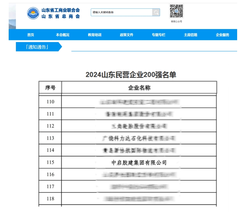 近日,2024山東民營企業(yè)百強(qiáng)系列榜單發(fā)布,公司榮登“2024山東民營企業(yè)200強(qiáng)”。